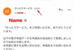 個人番号カード(マイナンバーカード)のオンライン申請が完了すると、画面のように「申請情報登録完了」の画面が表示され、登録のメールアドレスにも「【個人番号カード】申請受付完了のお知らせ」というメールが届きますので、間違いなく手続きが完了したかどうか、確認しましょう。