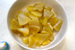 POINTアップルフィリングの分量は、フィリングにする前の剥いたリンゴ1個(240g)で丁度良い分量だったので、このぐらいの分量を目安に準備するとイイと思います😉