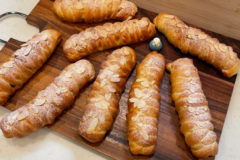 二次発酵が終わったらこんな感じに膨らみます。結構太く膨らんでいるので、6本にせよ8本にせよ、天板は二枚に分けてパン生地同士は開けて天板に並べた方がイイともいます🙆♂️今回はパン生地の半分は富澤商店さんのレシピ通り飾り付けしませんでしたが、残り半分はアレンジレシピということでアーモンドスライスを散らしました🤗 -