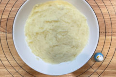 一次発酵を待っている間に、パン生地の中に包み込むマッシュポテトにチーズを混ぜる作業を済ませておきましょう。ピザ用チーズは細かく裁断されているので、柔らかいマッシュポテトに混ぜやすいと思います🙂 -