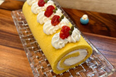 黒わんこカフェで紹介した事のあるロールケーキのスポンジ生地は「vivianさん監修 長方形ロールケーキ天板 小に合わせたスポンジ生地」「vivianさん監修 ロールケーキ天板 小に合わせた抹茶のスポンジ生地」という、使いやすい27cmのロールケーキ天板を使ったレシピを紹介した事がありますが、今回もこの天板を使ったレシピになります。